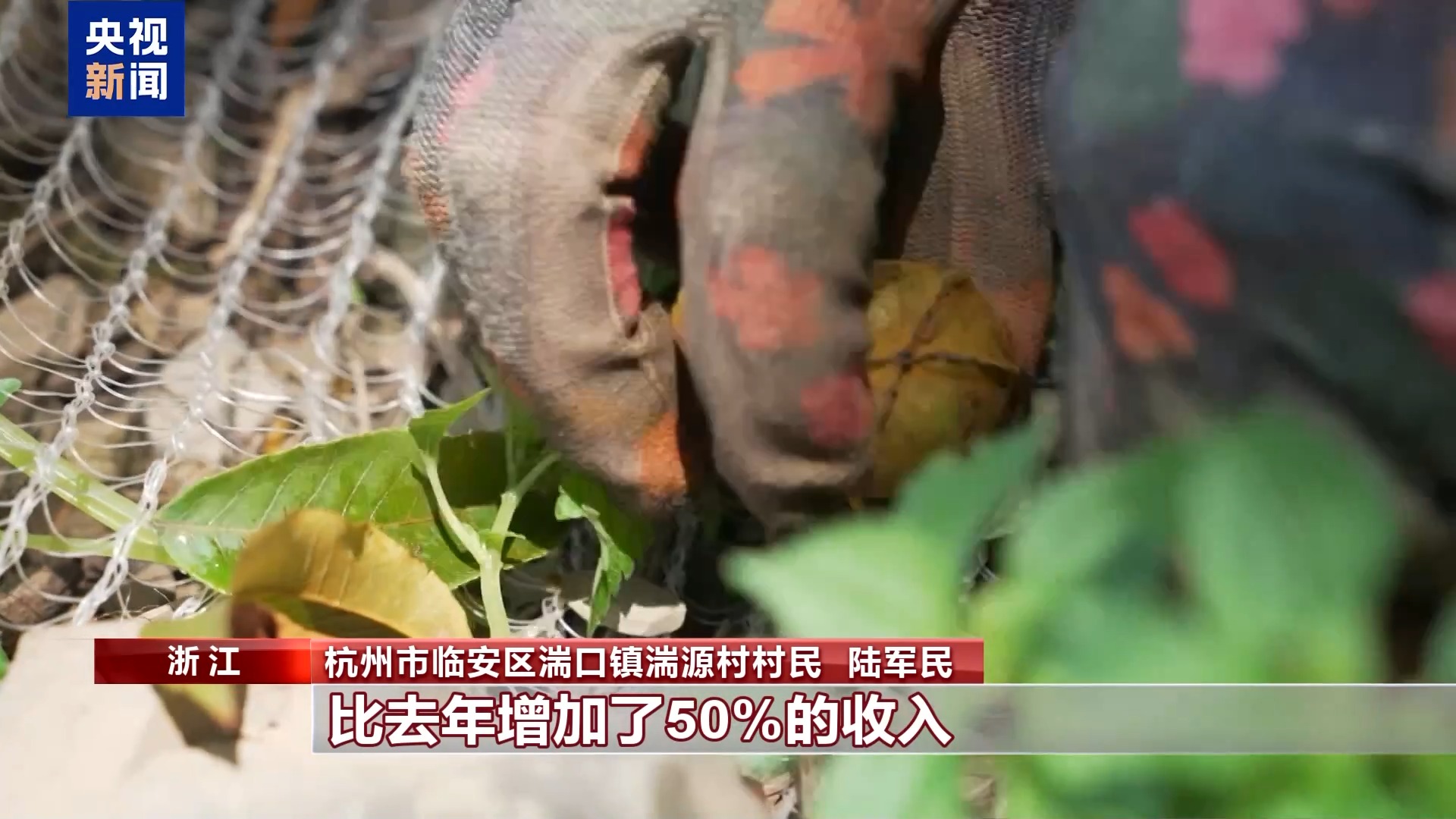 杭州市临安区湍口镇湍源村村民 陆军民:把我们一年的收成从地里刨回来了。我去年2000多斤,今年预计可以几乎翻一番,比去年增加了50%的收入。